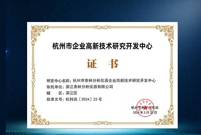 創(chuàng)新實力再獲肯定!泰林分析榮獲杭州市企業(yè)高新技術(shù)研究開發(fā)中心認證